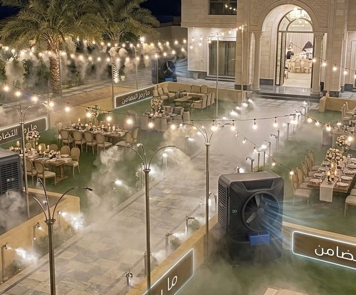 نقدم حلول تبريد مبتكرة لجلساتكم الخارجية بأجهزة رذاذ متطورة